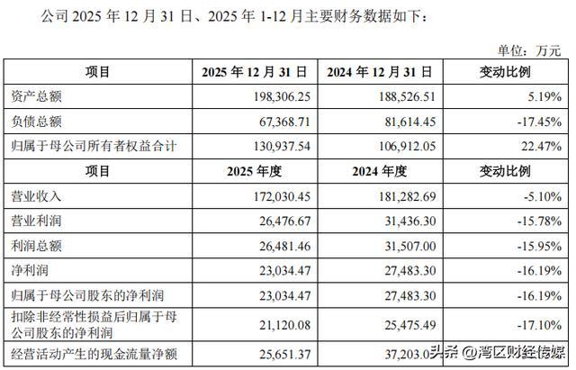 招股意向书显示,经审计机构审阅,福恩股份2025年全年的营业收入为17.20亿元,同比下降5.10%;归母净利润为2.30亿元,同比下降16.19%。