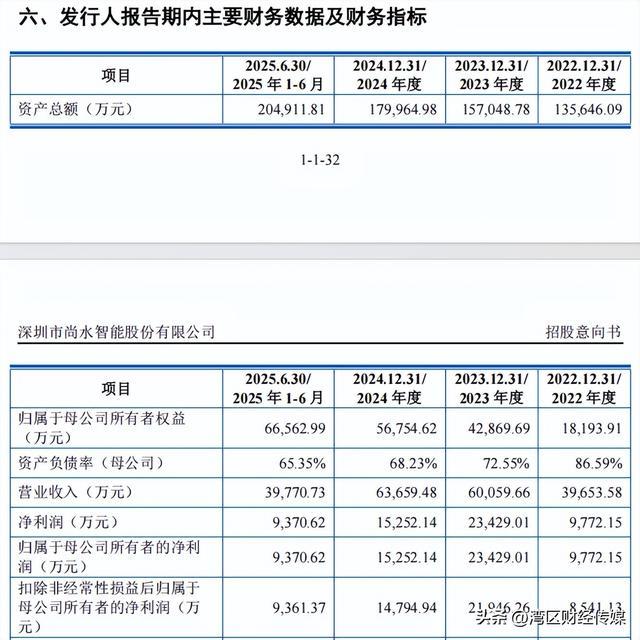 2022年至2024年及2025年上半年,尚水智能的营业收入分别为3.97亿元、6.01亿元、6.37亿元及3.98亿元,归母净利润分别为9772.15万元、2.34亿元、1.53亿元及9370.62万元。