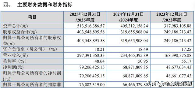 2023年至2025年,恒道科技的营业收入分别为1.68亿元、2.34亿元、2.97亿元,归母净利润分别为4866.11万元、6887.18万元、7920.64万元。