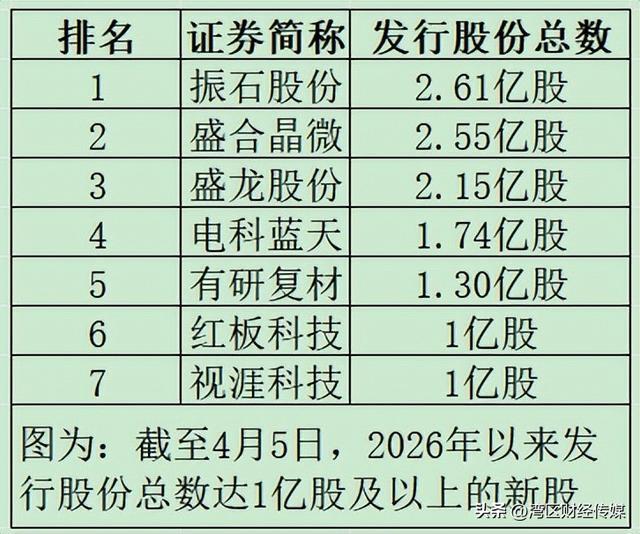 截至4月5日,盛合晶微此次发行股份总数位居2026年以来沪深两市新股第二位,因此投资者申购盛合晶微,中签概率较高。