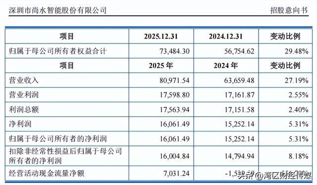 招股意向书显示,经审计机构审阅,尚水智能2025年全年的营业收入为8.10亿元,同比增长27.19%;归母净利润为1.61亿元,同比增长5.31%。