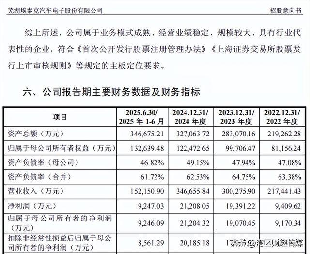 2022年至2024年及2025年上半年,埃泰克的营业收入分别为21.74亿元、30.03亿元、34.67亿元和15.22亿元,归母净利润分别为9170.34万元、1.91亿元、2.12亿元、9246.09万元。